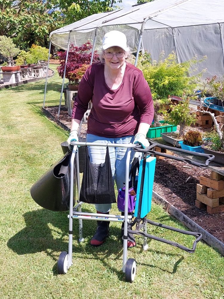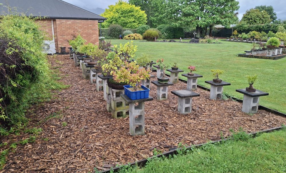 After having sold some of our trees at the show, Peter was able to remove the whole of the back row of stands which gave us more room and meant that the jessamine hedge didn’t send out tendrils straight into the bonsai. He also made some stands wider to take the larger trees and revamped a few of the smaller stands to lift the trees up.